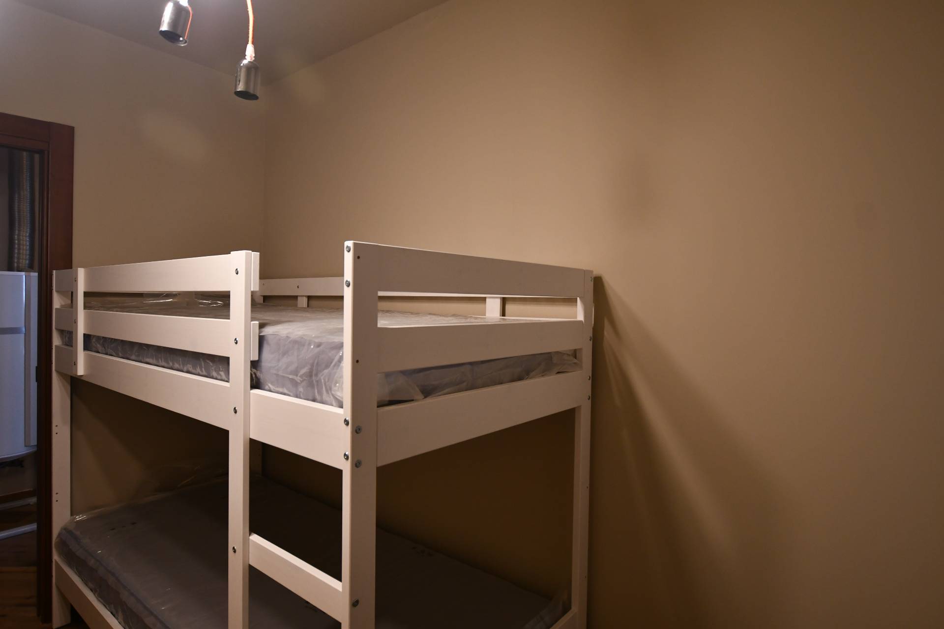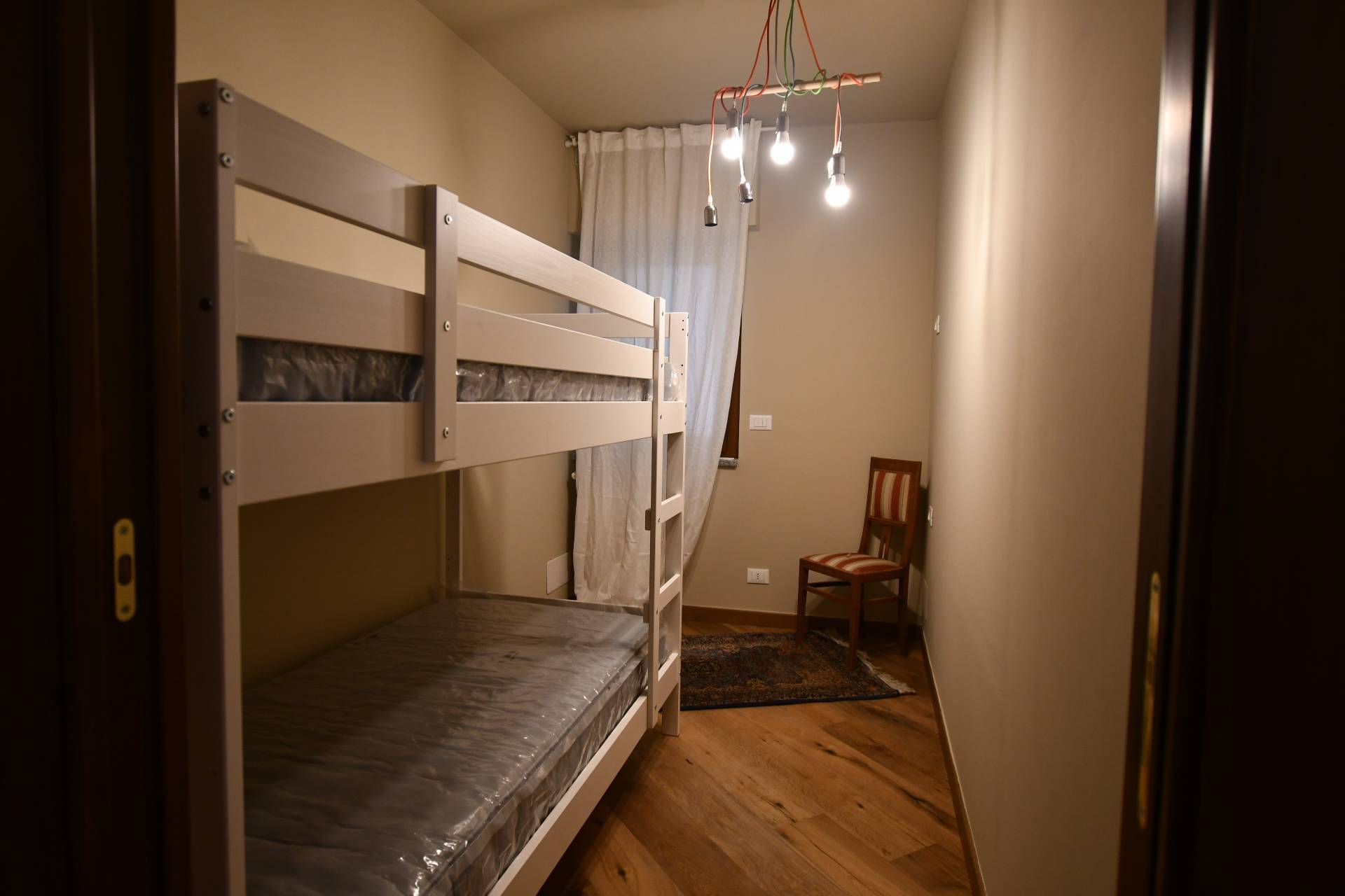 Gli spazi sono ben organizzati, si accede ad un ampio ingresso living con angolo cottura attrezzato di tutti gli elettrodomestici, e la zona notte è suddivisa in due camere da letto di cui una matrimoniale e una con un letto a castello ed il bagno.