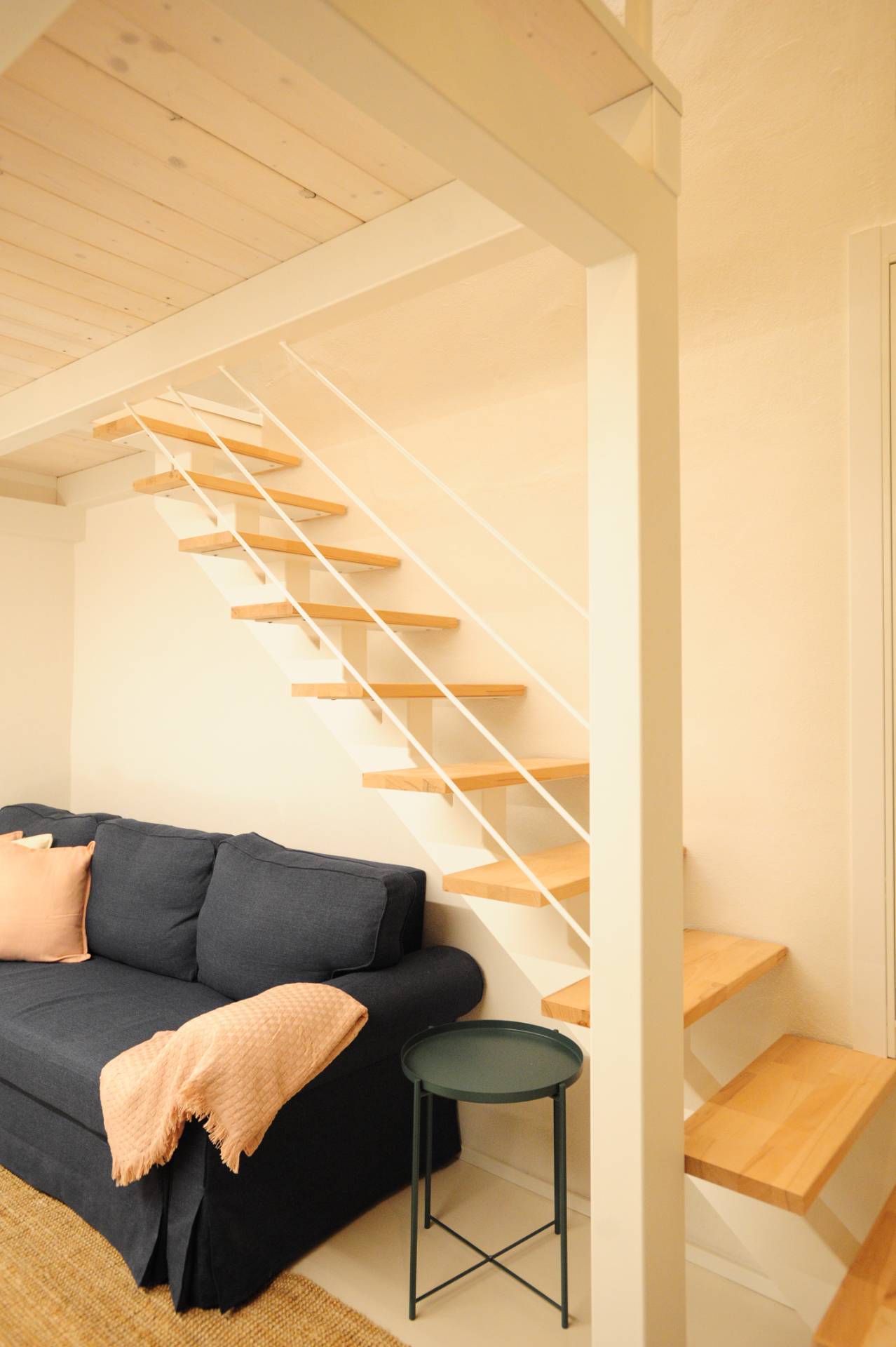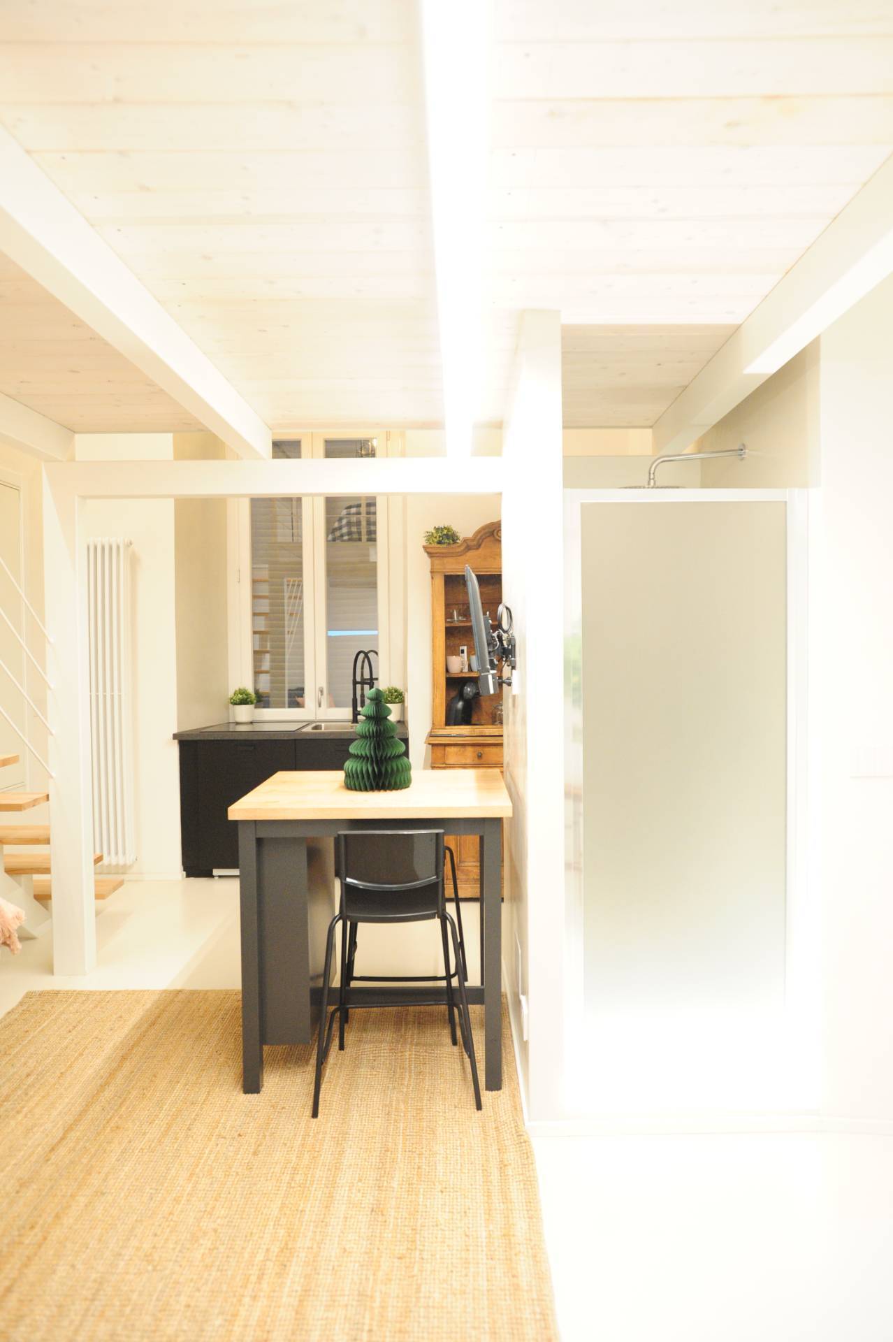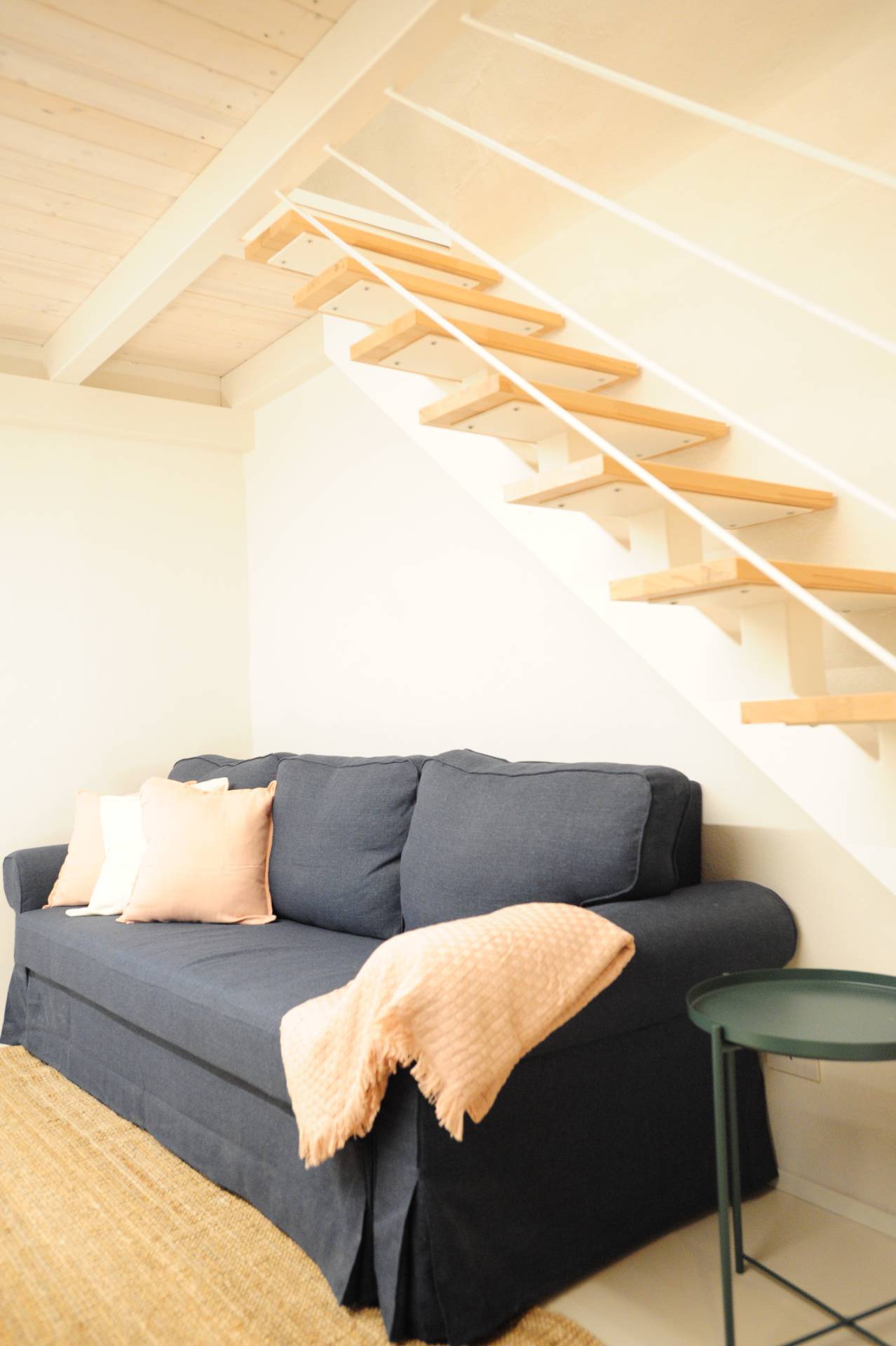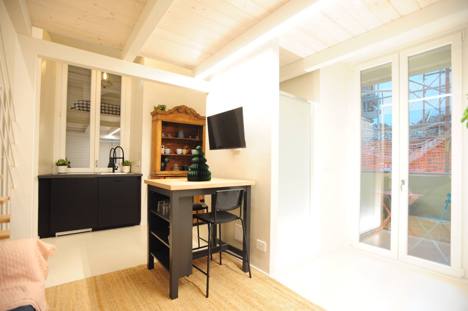 Gli ambienti sono distribuiti su due livelli con due graziosi balconcini e consentono una comoda divisione zona giorno/zona notte: l'ingresso è direttamente su zona soggiorno con cucina a vista nella quale è presente un divano letto e servizio. Il piano soppalco è un luminoso ambiente aperto sul soggiorno adibito a camera letto matrimoniale. Gli ambienti sono di nuova realizzazione con impiego delle ultime tecnologie disponibili, totalmente arredati pronti da vivere e dotati di tutti i comfort: wifi in fibra ottica, gestione indipendente di temperatura, lavanderia in zona comune, climatizzatore, smart tv full hd
