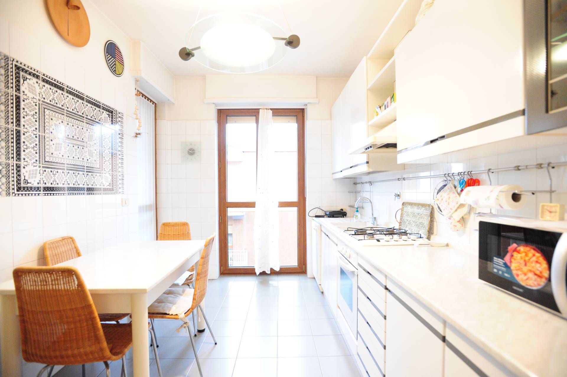 Gli spazi funzionali completano la zona giorno una funzionale cucina abitabile con servizio e ripostiglio dedicati. La zona notte comprende tre generose camere da letto con particolare bagno in mosaico di ceramica bisazza e doccia walk-in.