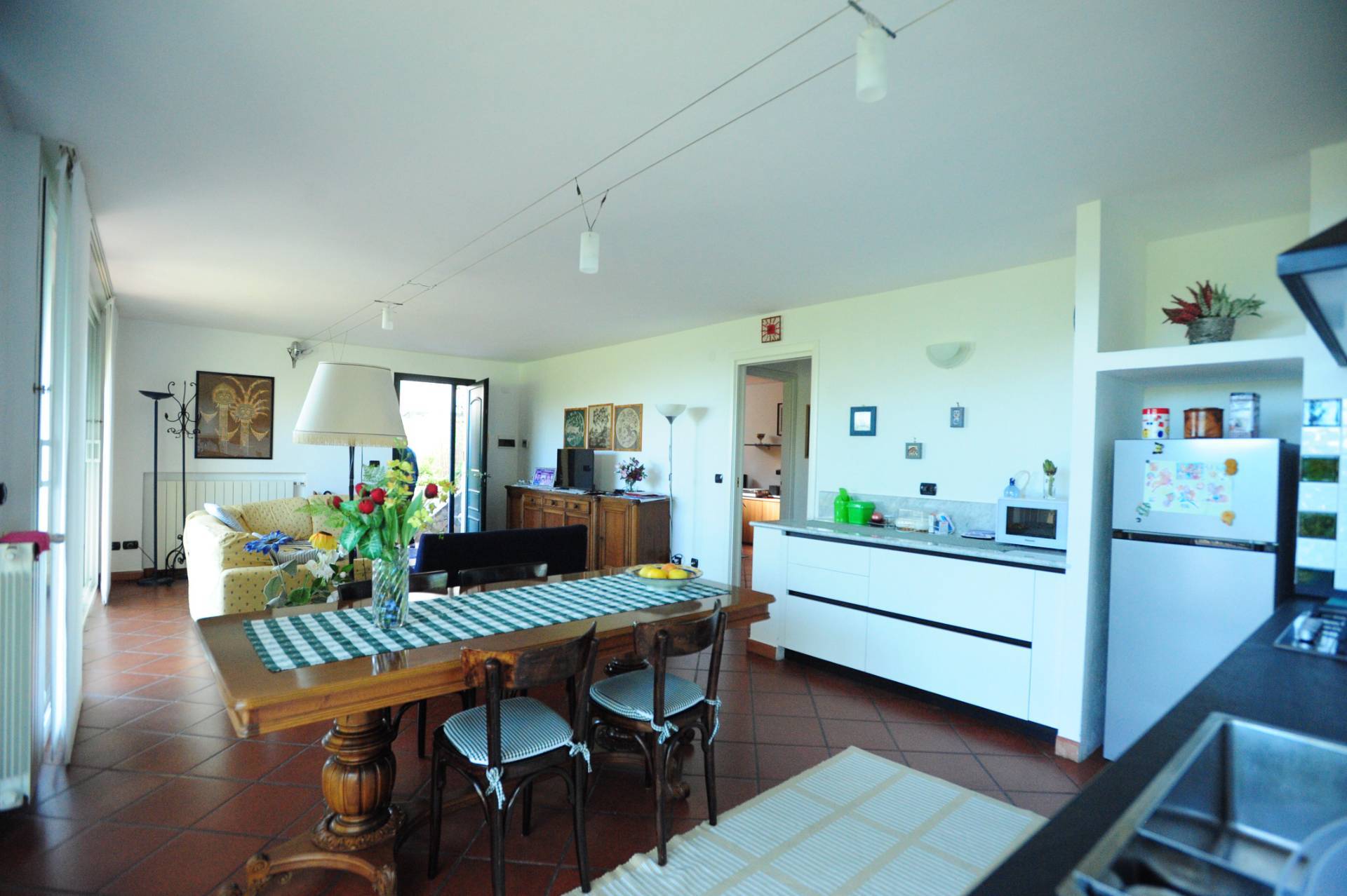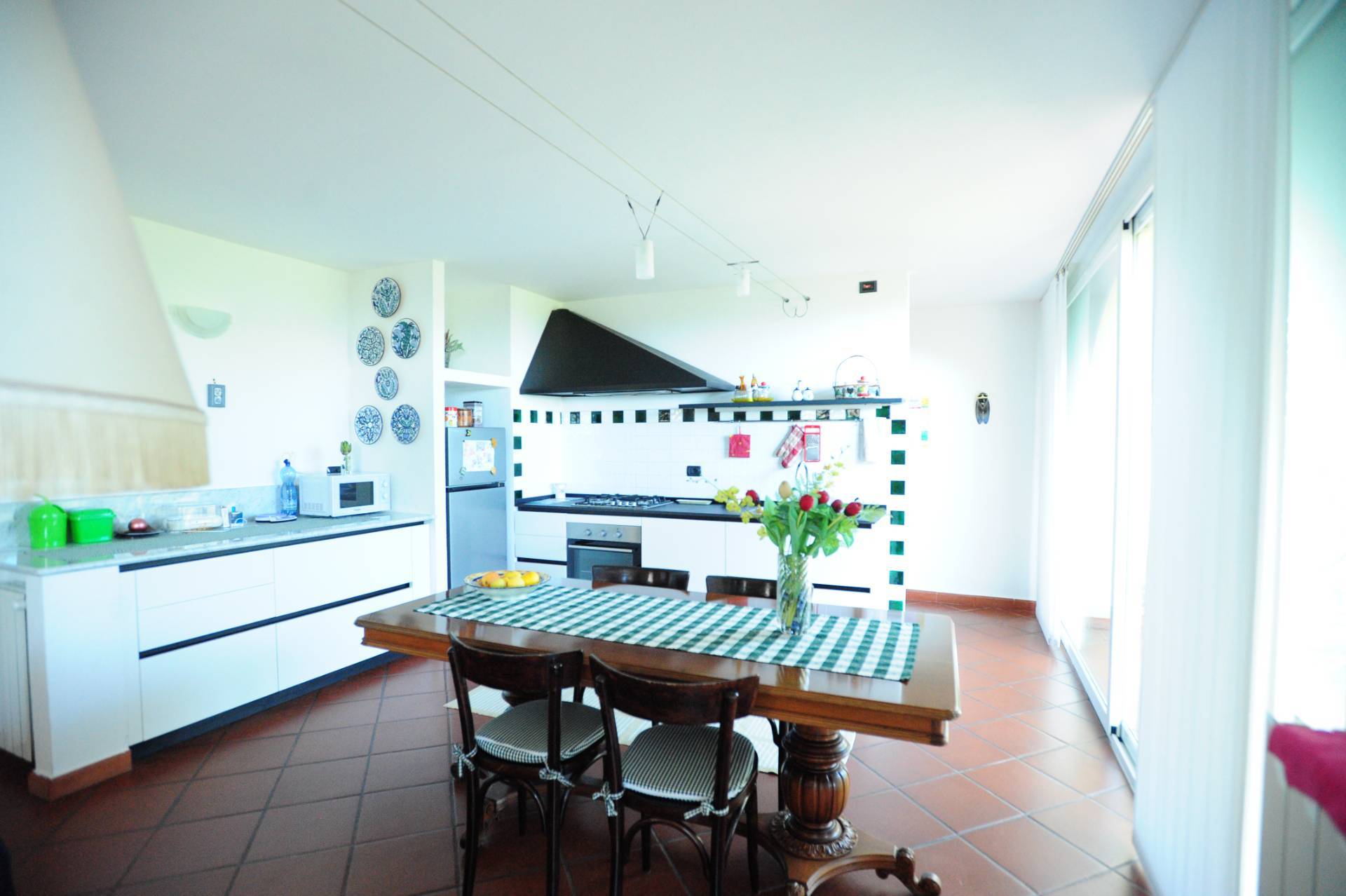 La cucina, anch'essa arredata e accessoriata, è separata dal soggiorno e dispone di un comodo spazio per il pranzo.