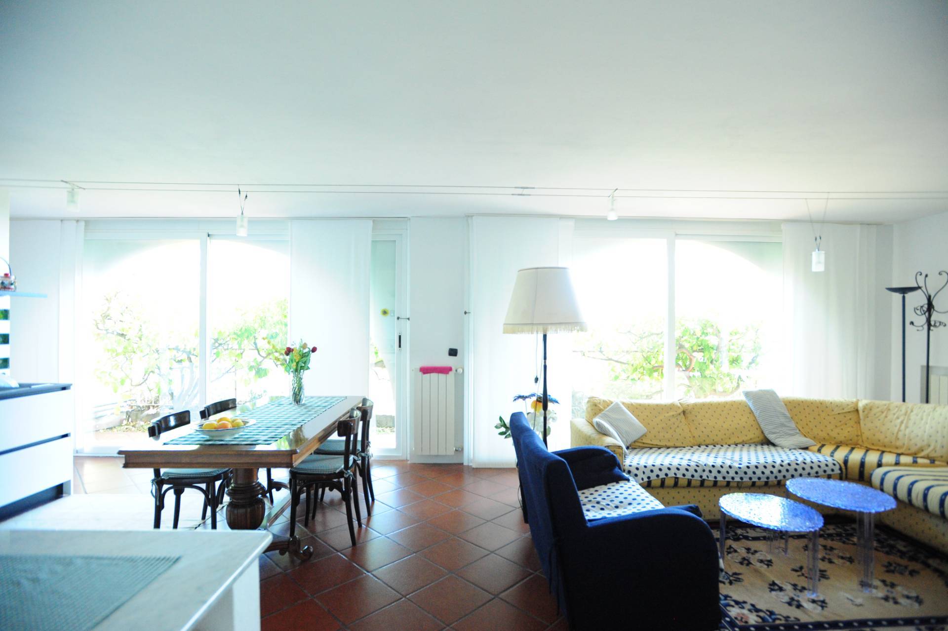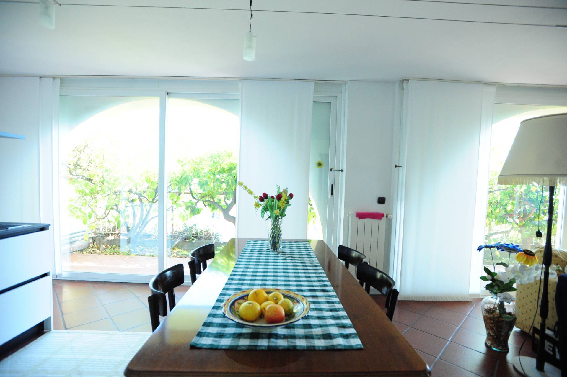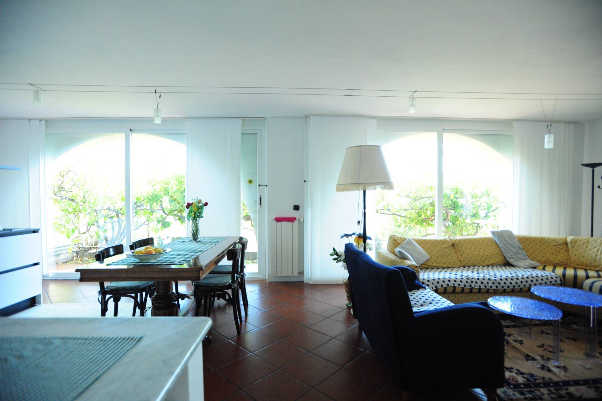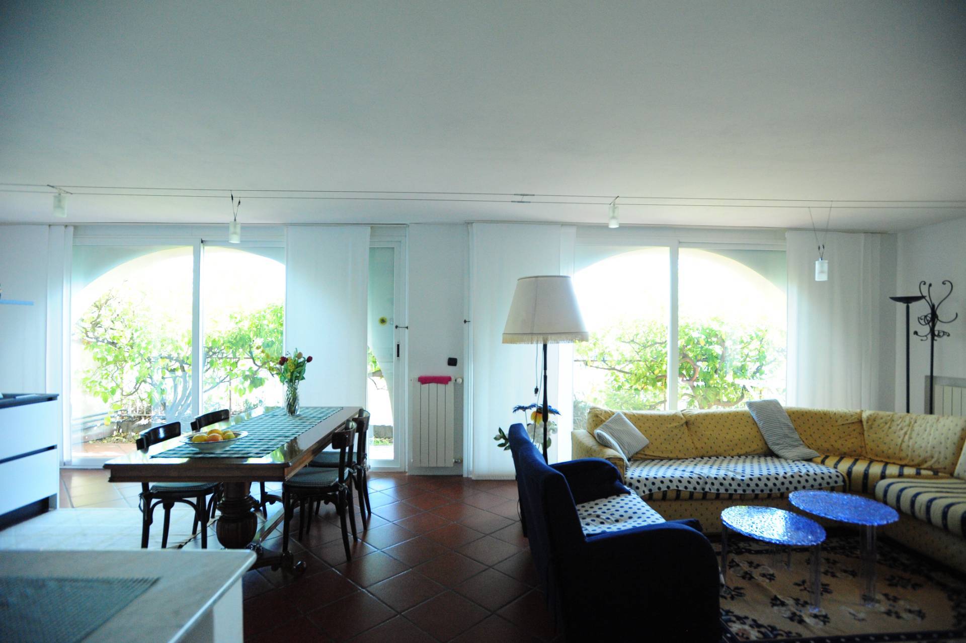 L'ingresso conduce a un ampio e accogliente soggiorno, arredato con gusto e dotato di grandi arcate con finestre panoramiche che regalano una piacevole esposizione al sole durante tutto il giorno.