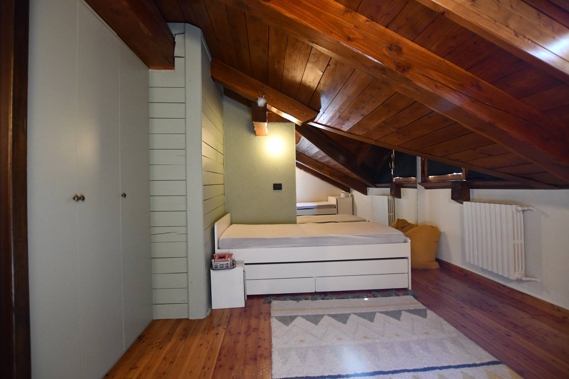 Disposto su due piani è composto da un ingresso, ampio soggiorno con angolo cottura, camera matrimoniale e bagno al piano sotto, nel piano mansardato una camerette ed un secondo bagno.